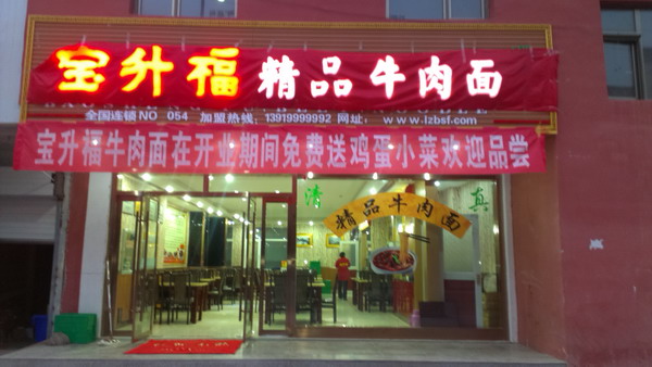 宝升福牛肉面第54号店,在2013年8月21日,正式开业了,老板是土生土长的当地藏族同胞,在今年5月7月先后几次来兰州考察,品尝,确定与宝升福合作。
