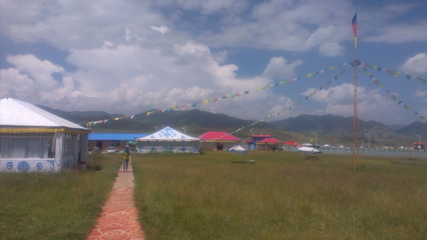 蓝蓝的天空,美丽的桑科大草原,藏传佛教六大寺院之一的拉卜愣寺,甘肃著名的旅游圣地,甘肃省甘南藏族自治州夏河县。