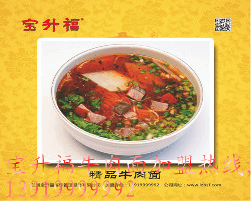 宝升福牛肉面兰州总部,在经过长期精心研制和个别加盟店和直营店的试用后,得到良好的反馈意见,从产品食材原料选定和餐品包装材料的密封性做了细致的调整。在配送价格方面总部只收取成本价,配送价格和兰州直营店一样统一定价,请各店放心使用。